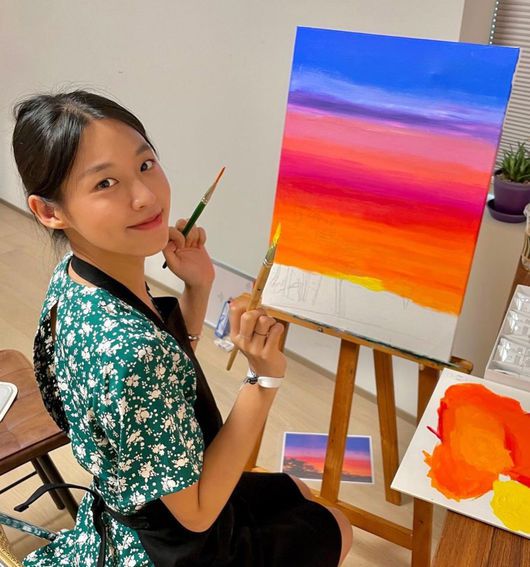 설현은 "신나는 미술시간"이라고 글을 남겼다. 공개된 사진 속에서 설현은 캔버스 앞에서 집중해서 그림을 그리고 있는 모습으로 그림을 그리다가 카메라를 응시하고 있다.