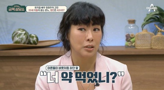최근 배우 정영주가 ADHD(주의력결핍 과잉행동장애)를 앓고 있는 아들의 어린 시절에 대해 애기했다.