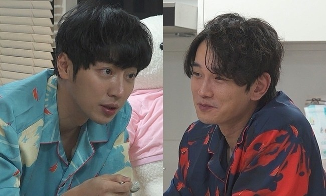 온주완의 집에는 15년 지기 절친 이상엽이 방문했고 서로를 이름 끝자로 부르며 중년 부부 케미를 자랑한 두 사람은 커플 잠옷까지 맞춰 입고 만담을 이어갔다.