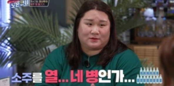 정유인은 “저는 소맥 한두 잔으로 안 취하니까 취하고 싶을 땐 두 세잔 정도 마신다"고 말했다. 한유미는 "취하고 싶은 날이 있냐'라고 지적해 웃음을 자아냈다.