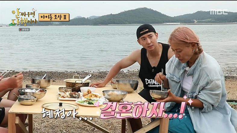 이어 요리를 마치고 식사하던 찰나 브라이언은 재차 황보에게 “혜정아, 결혼하자”라며 청혼했다. 이어 “계약결혼하면 사랑할 필요 없어. 난 청소할 테니 넌 요리해라”라고 덧붙였고, 분노한 황보는 “미친거 아니냐”라고 발끈해 주변을 폭소케 했다.