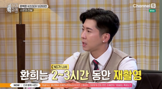 브라이언은 이어 "그때 이민정과 키스신이 있었는데 환희는 NG가 나서 2~3시간 동안 재촬영을 했다. 그런데 나는 한 방에 끝내서 농담으로 이민정이 '키스 되게 잘하시네~'라고 했다"고 설명했다.