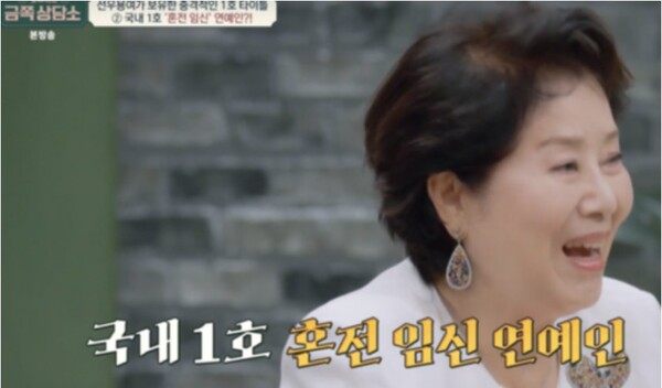 선우용녀는 대한민국 1호 혼전 임신 연예인이라는 사실을 밝혀 놀라움을 자아냈다.