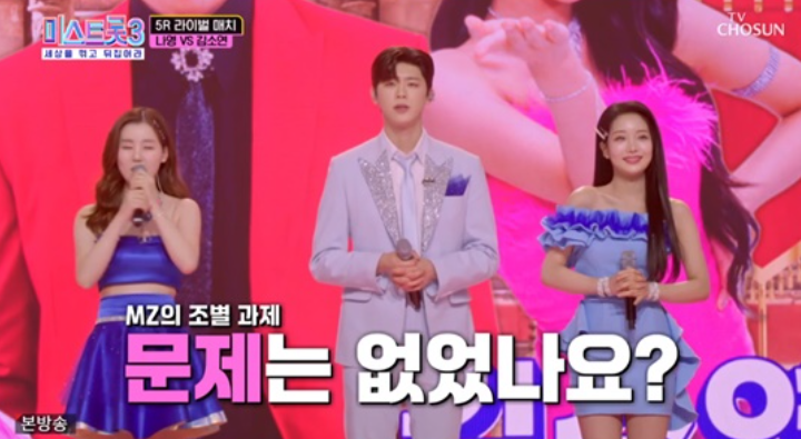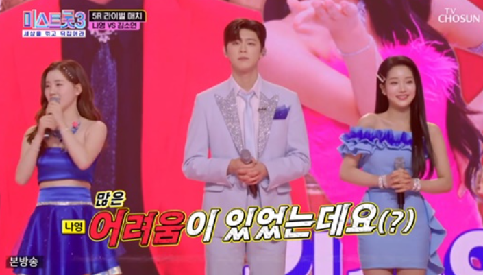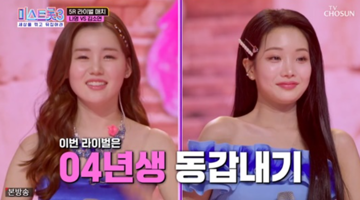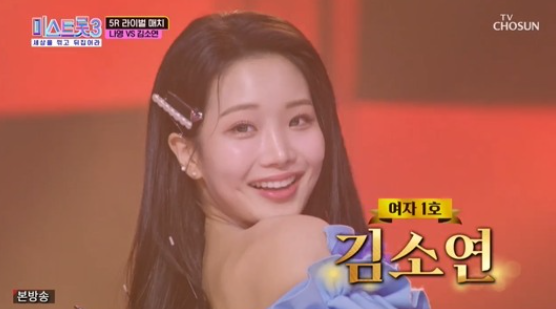김소연은 미스트롯3 5라운드 라이벌 매치 미션에서 삼각대전을 펼쳤고 ‘미스트롯3’ TOP14 나영, ‘미스터트롯2’ TOP7 박지현과 팀을 이룬 김소연은 1차 무대에서 우연이의 ‘그남자’ 무대를 선보였다.
