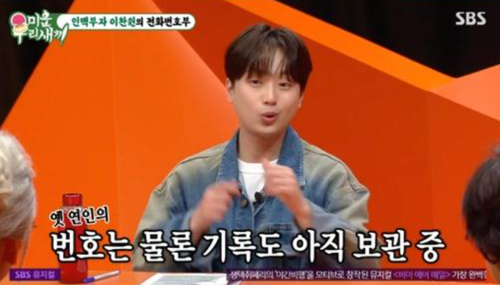 이에 이찬원은 "정확하게 3000명 정도 되더라, 예전 여자친구 전화번호도 있고 예전 여자친구와 교제할 때 남겼던 기록도 그대로 있다"고 해 모두를 놀라게 했다. 이찬원은 "그때 제 모습도 추억이라고 생각한다"고 덧붙이며 설명했다.