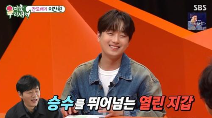 신동엽은 이찬원에 대해 “김승수 뛰어넘는 열린 지갑이라더라, 누가 계산하는 꼴을 못 본단다”고 말했다.